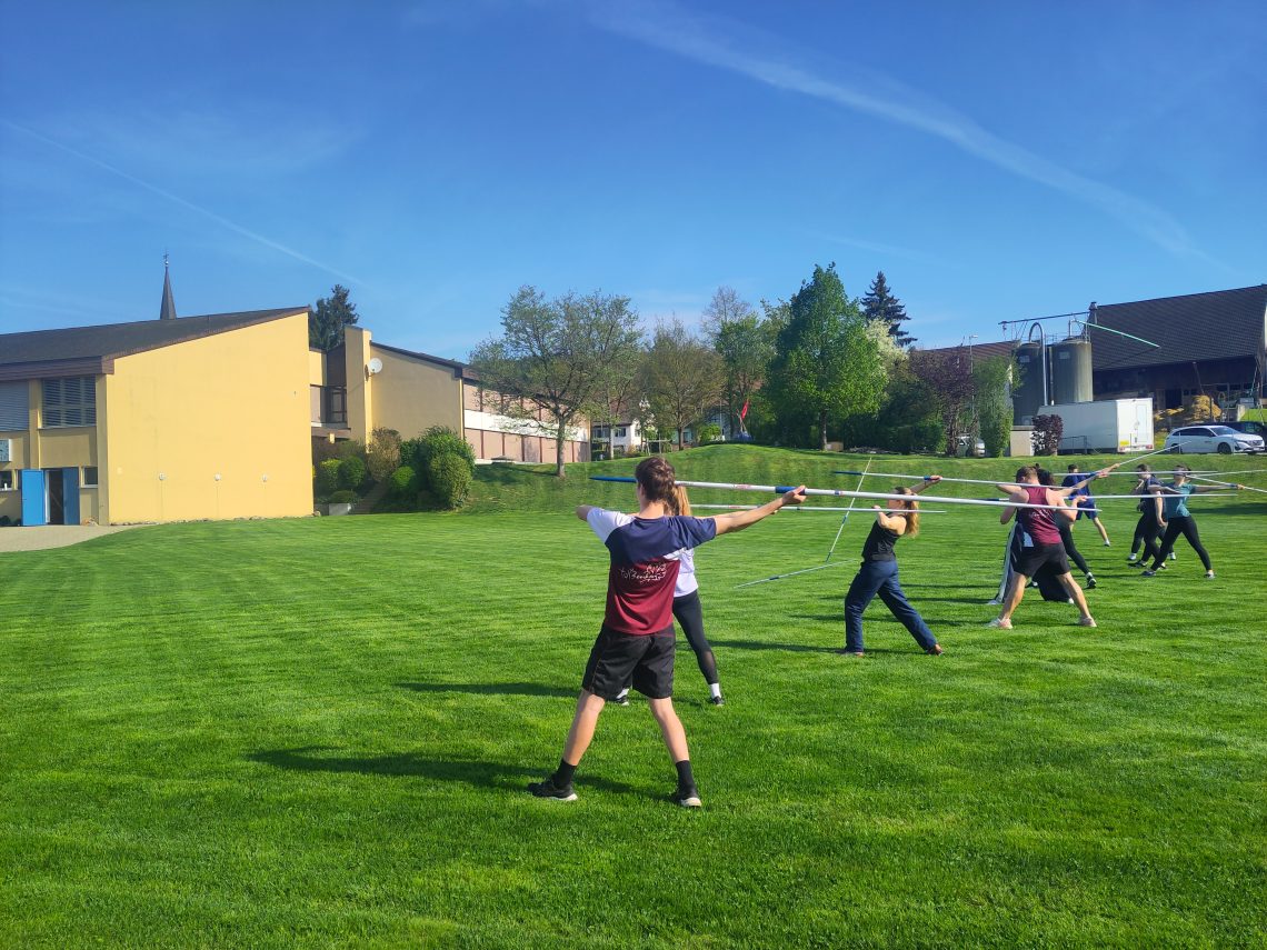 Bericht Trainingswochende 12./13.04.2025 Bei bestem Wetter konnten wir am Samstagmorgen in unser Trainingswochenende starten.Es begann mit einem kurzen Aufwärmen. Danach wurde bei einigen noch schnell der Sonnenschutz aufgetragen, bevor für alle eine Stunde Speerwurftraining auf dem Programm stand.Nach der Speereinheit und einer kurzen Pause, um den Koffeinhaushalt mit Mate wieder aufzufüllen, begann die Trainingseinheit für Weitsprung und Steinheben.Bei beiden Trainings wurden den Turnerinnen und Turner nicht nur die Technik und Ausführung, sondern auch Inputs zu möglichen Kraftübungen für zu Hause mitgegeben.Anschliessend wurde das Mittagessen an einem schattigen Platz eingenommen und das angenehme Wetter genossen. Nach einem Nickerchen zur Verdauung war dann aber wieder Training angesagt.Techniktraining im Kugelstossen und Werfen brachten…